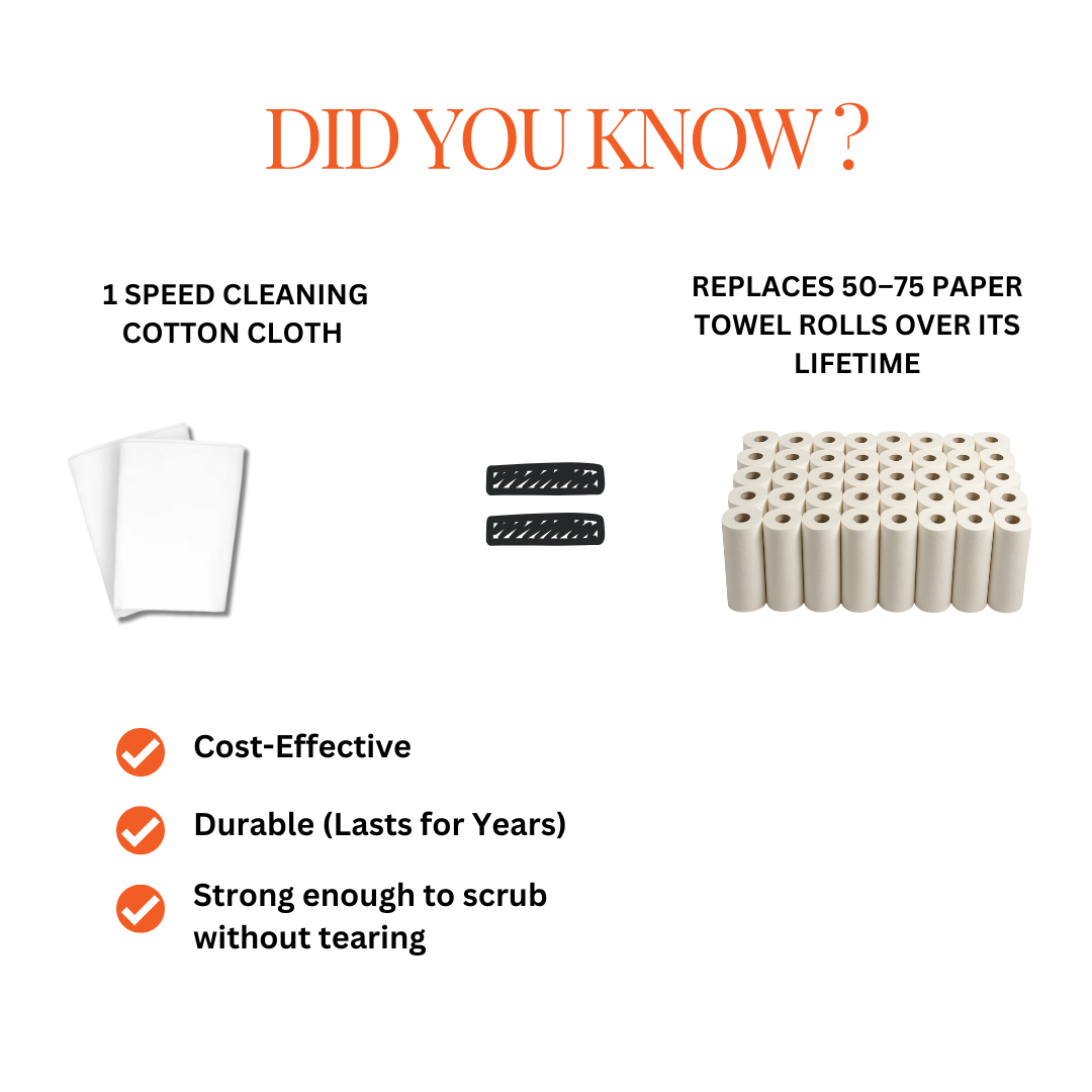 Every Speed Cleaning Cotton Cloth saves dozens of paper towel rolls from going to the landfill.